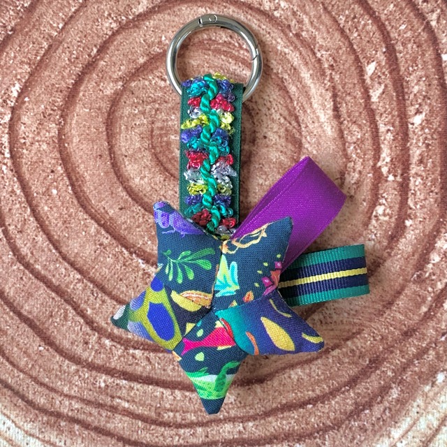 パッチワークのお星様をリボンで飾った流れ星のバッグチャームです。 カラビナを取り外すと、ブローチ&ヘアクリップのコサージュとして使用できます。 デザインは全て一点もののため、貴方だけの願い星を見つけてくださいね。 サイズ(カラビナ含む) 縦 約13cm 横 約9cm