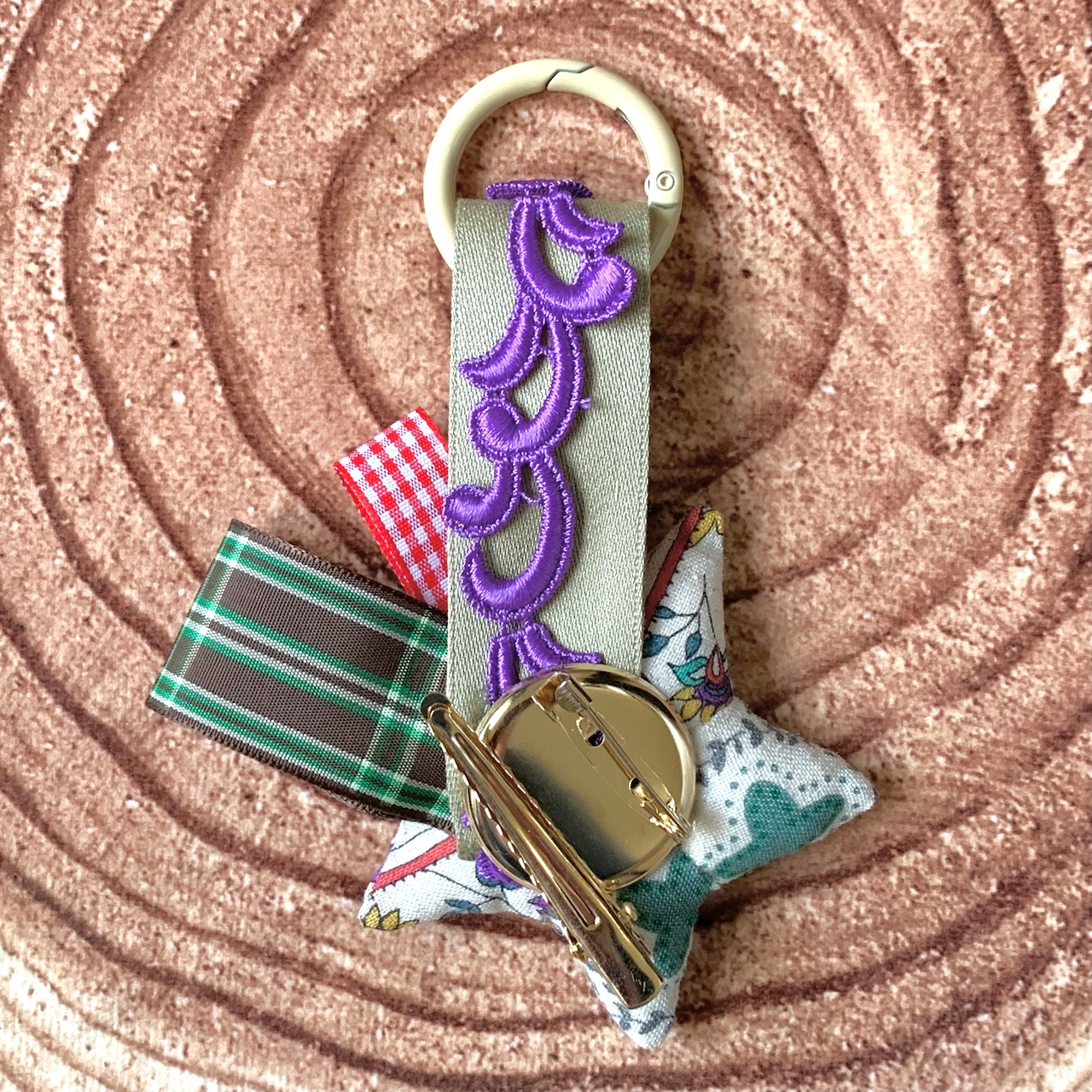 パッチワークのお星様をリボンで飾った流れ星のバッグチャームです。