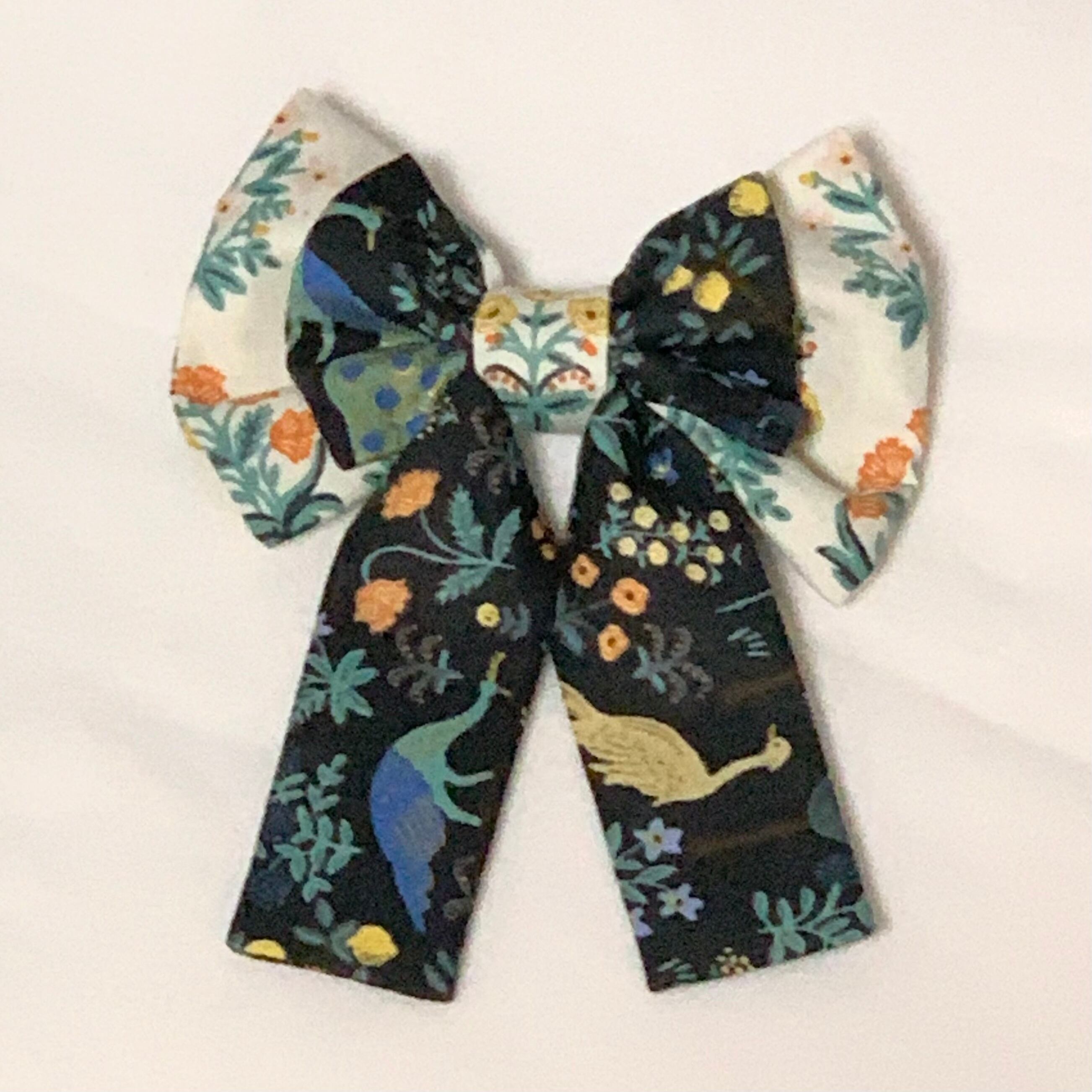 ジャングルを思わせる草花と動物のプリント生地と、優しい花柄の生地を組み合わせました。