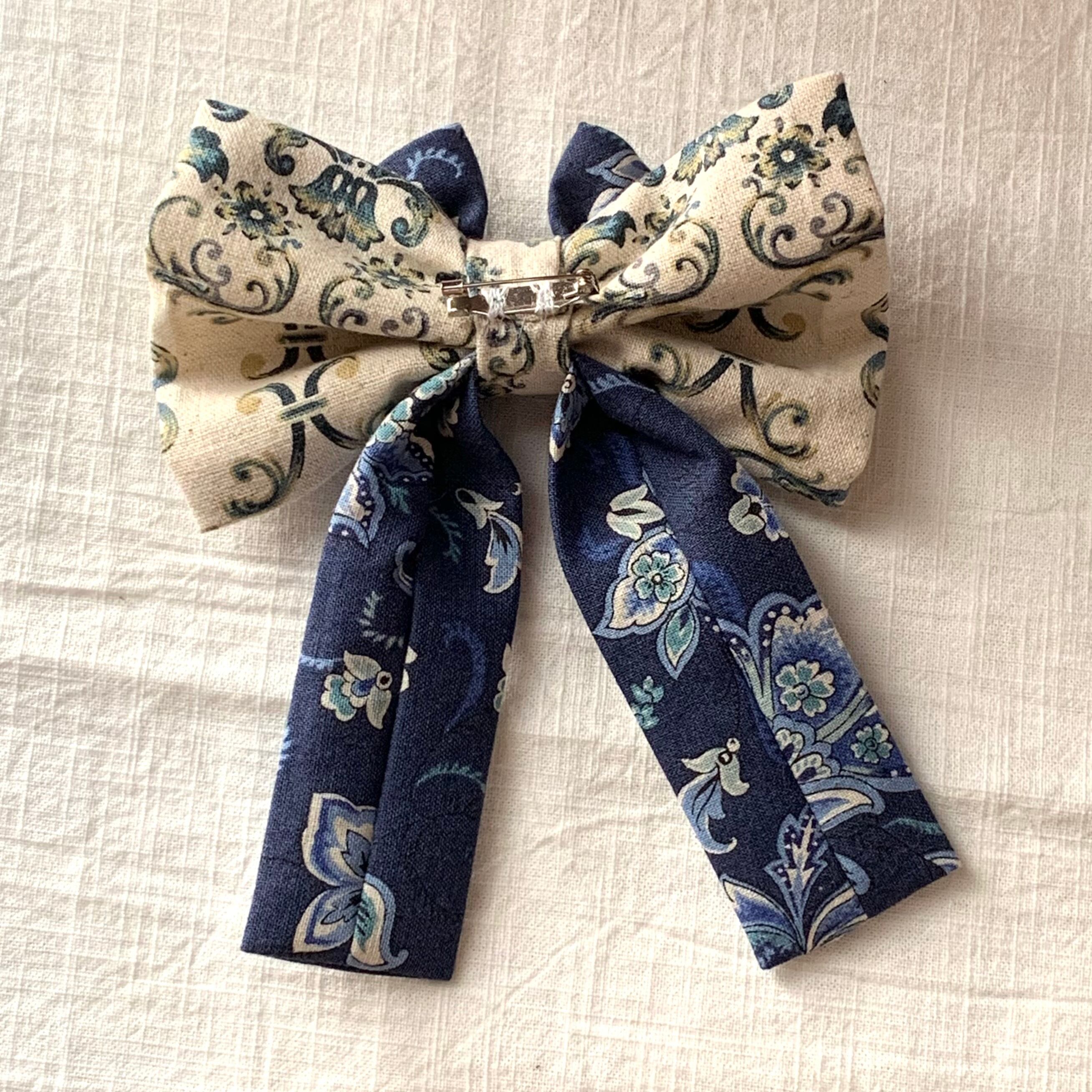 ビンテージ風のペイズリー調の花柄の生地に、ざっくりした風合いのダマスク柄を合わせ、ナチュラル且つ上品なデザインに仕上げました。
